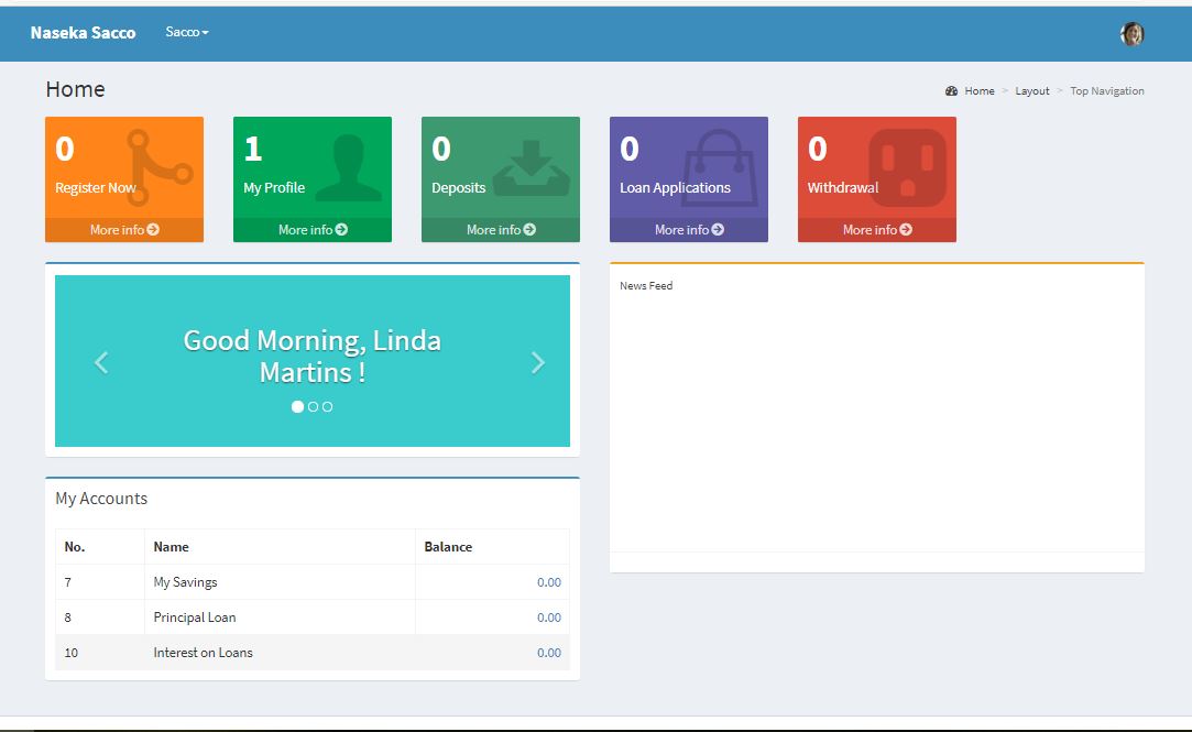 Once the Sacco Member has been authenticated and authorized, they will be redirected to the member home page.
